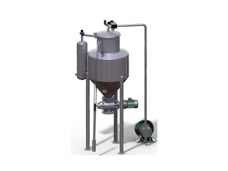 真空上料機(jī)由真空泵(無油、無水)、覆膜濾袋過濾器、壓縮空氣反吹裝置、氣動(dòng)放料門裝置、真空料斗和不銹鋼可調(diào)吸料槍、輸送軟管等部件組成。